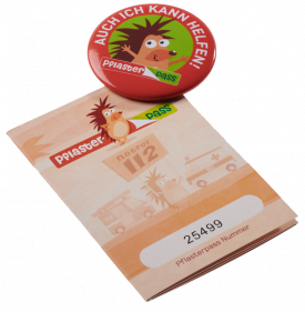 Alle Kinder erhalten nach der Teilnahme am Pflasterpass® -Kurs einen Ausweis: den „Pflasterpass". Er dokumentiert die erfolgreiche Teilnahme für 4- bis 5-Jährige (Bronze), 6-Jährige (Silber) und 7- bis 8-Jährige (Gold).