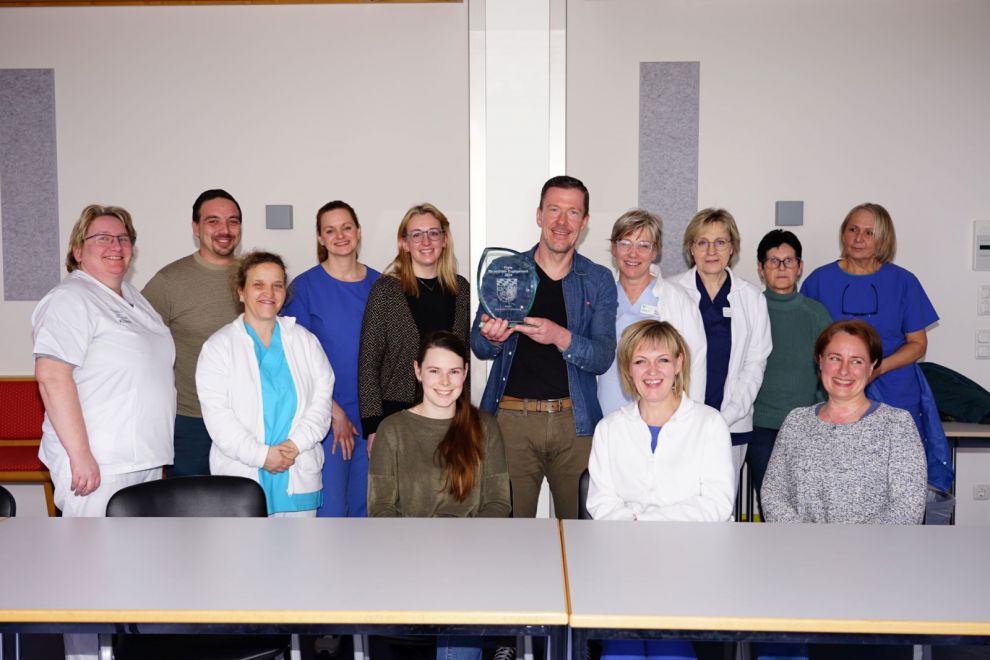 Die Gratulationen richteten sie bei der Leitungsbesprechung ihren Kolleginnen und Kollegen aller Stationen aus. Die Pflegekräfte nahmen gemeinsam den Preis entgegen und freuten sich über das Zeichen der Anerkennung und Wertschätzung für ihre Arbeit.