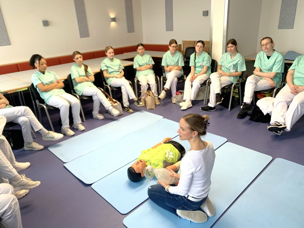 Aus der Nardini-Realschule waren 15 Neuntklässlerinnen vom 7. bis 16. Januar im Rahmen eines Sozialpraktikums an der Klinik Mallersdorf und erstmals auch an der Berufsfachschule für Pflege der Kreiskliniken Bogen-Mallersdorf zu Gast. Die anderthalb Wochen standen unter dem Motto „Compassion" - englisch für Mitgefühl, wobei der Fokus darauf lag, der eigenen Gesundheits- und Sozialkompetenz Raum zur Entfaltung zu geben und entsprechende Berufe im Gesundheitswesen kennenzulernen.